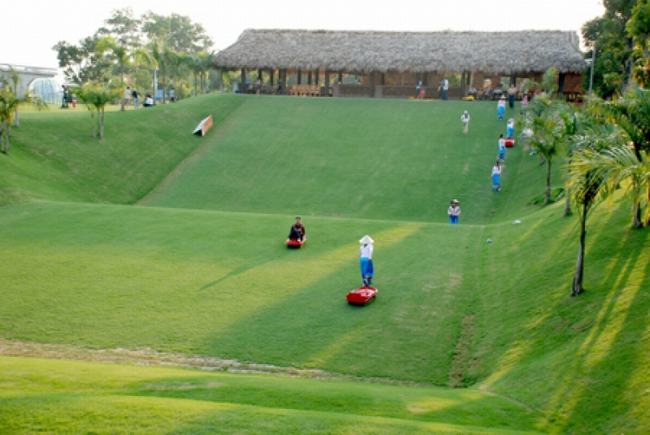 Ngoài ra, quý khách Khám phá các trò chơi tại khu Asean với nhiều trò chơi hấp dẫn: Ngồi trượt bánh xích đu, đi cà kheo trên cỏ,( chi phí tự túc) …